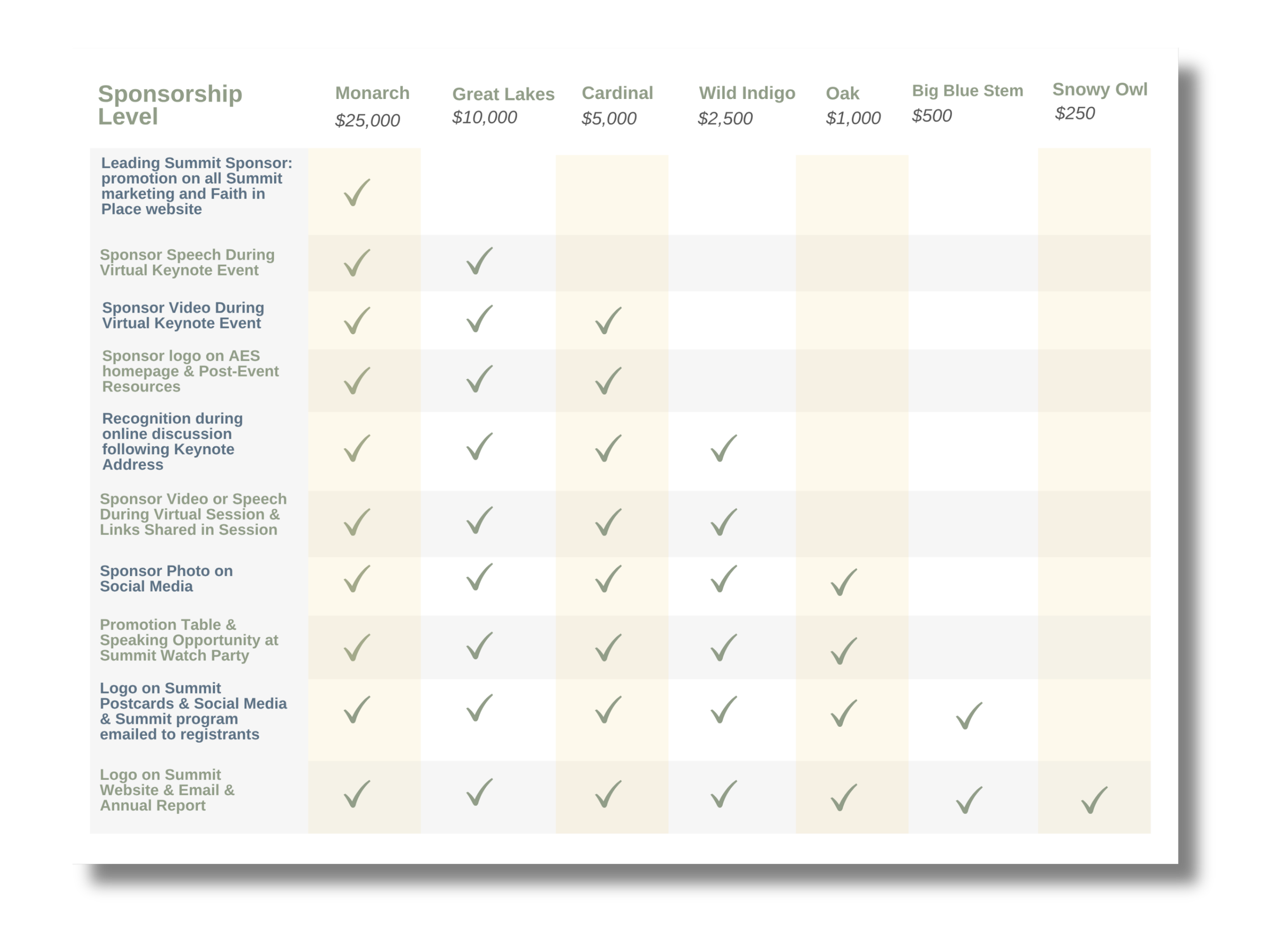 Website Promotion: Logo and 15-word message about why your are sponsoring displayed on Summit website. Logo is linked to sponsor’s website.